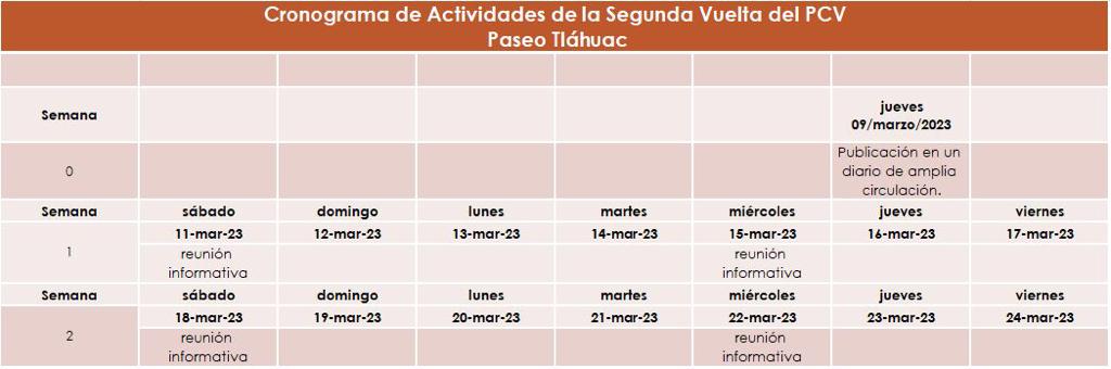La Segunda Vuelta del Proceso de Consulta Vecinal del (PCV) Proyecto Paseo Tláhuac, no sustituye ni trasgrede otras normatividades, y se llevará a cabo con el objetivo de reafirmar los acuerdos derivados de la Primera Vuelta, con los grupos de vecinos participantes en la Primera Vuelta.